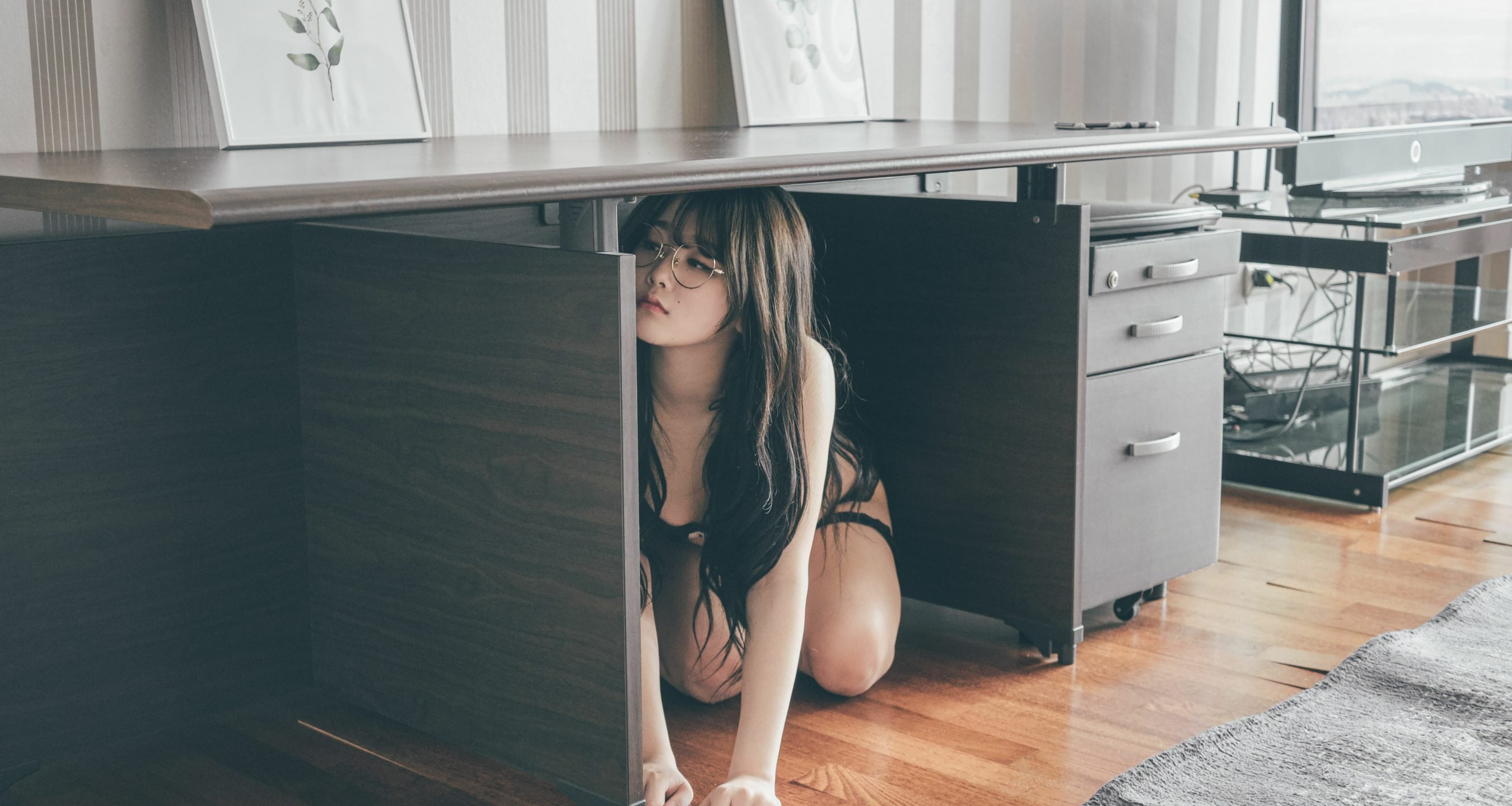 an asian female spreads her hairy twat and has romp